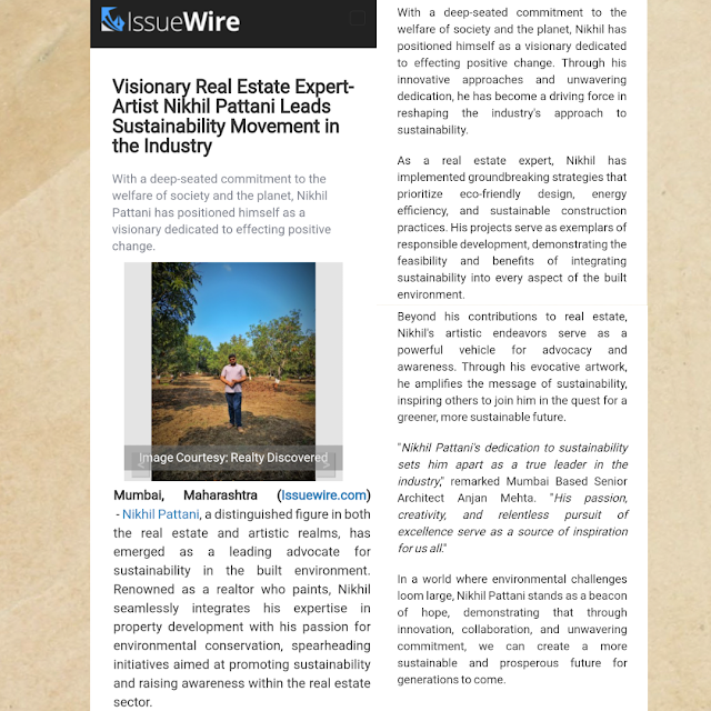 Media Mentions | Visionary Real Estate Expert-Artist Nikhil Pattani Leads Sustainability Movement in the Industry